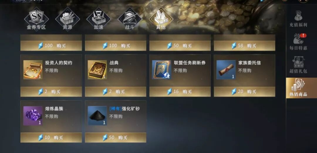 熔炼消耗的材料—熔炼晶簇可以在联盟商店及商城购买 。