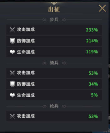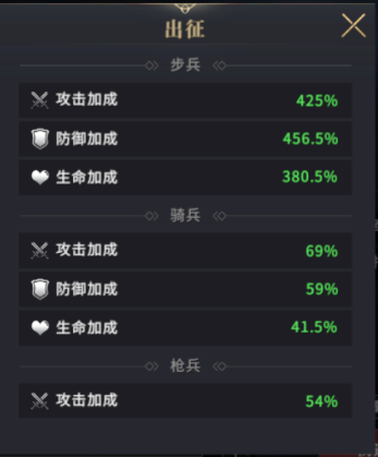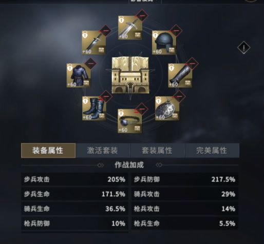 前面小蓝也提到过,熔炼功能是为了打造更加完美纯粹的套装,那么一件套装可以为领主带来多大的战力提升呢?通过下方对比可以清楚看到,小蓝装备了八件传说(金色)品质的长夜守望套装后,步兵的战力加成整体提升一倍!搭配极限步兵流指挥官,战力非常恐怖!悄悄告诉大家,小蓝这里展示的还不是纯粹属性套装哦!